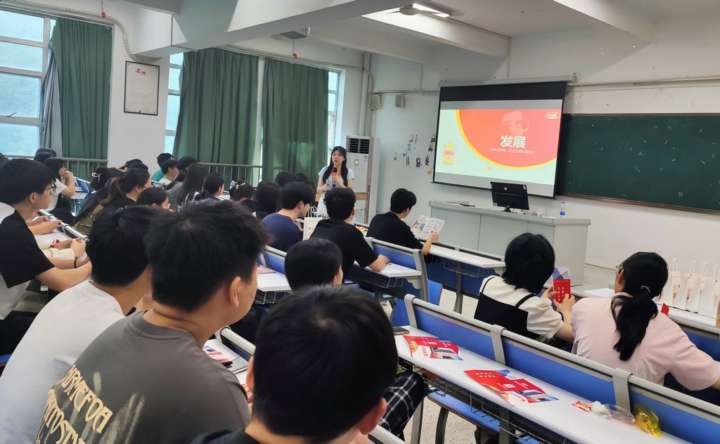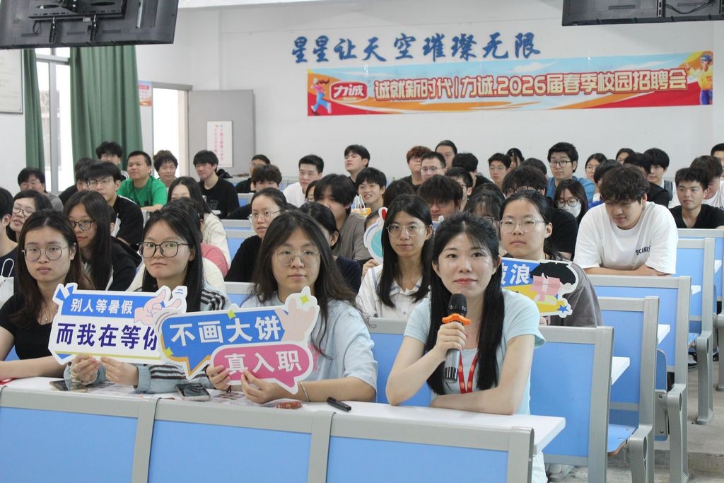 活动现场,福建力诚食品有限公司人事部黄经理担任宣讲人,详细介绍了公司情况。力诚食品有限公司创办于 2006 年,位于福建泉州,专注于肉制品和海洋类产品的研发、生产与销售,拥有六家现代化工厂,建筑面积达 44 万平方米,是火腿肠行业的标杆企业,其鱼香肠销量更是在全国独占鳌头。本次招聘会以“诚就新食代”为主题,彰显出企业在食品领域不断创新、追求卓越的信念。