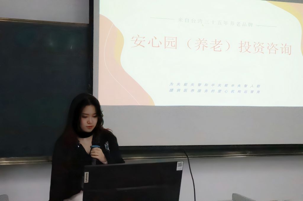 招聘宣讲会上,企业宣讲人详细介绍了公司情况。福州安心园投资咨询有限责任公司成立于2012年,2023年在福州开办第一家健康养老机构,秉持“安心养老”理念,目前以“安心园养老连锁”为品牌的养老机构分布于福州、泉州、杭州、绍兴等六省九地市,直营机构10余家,品牌影响力广泛。