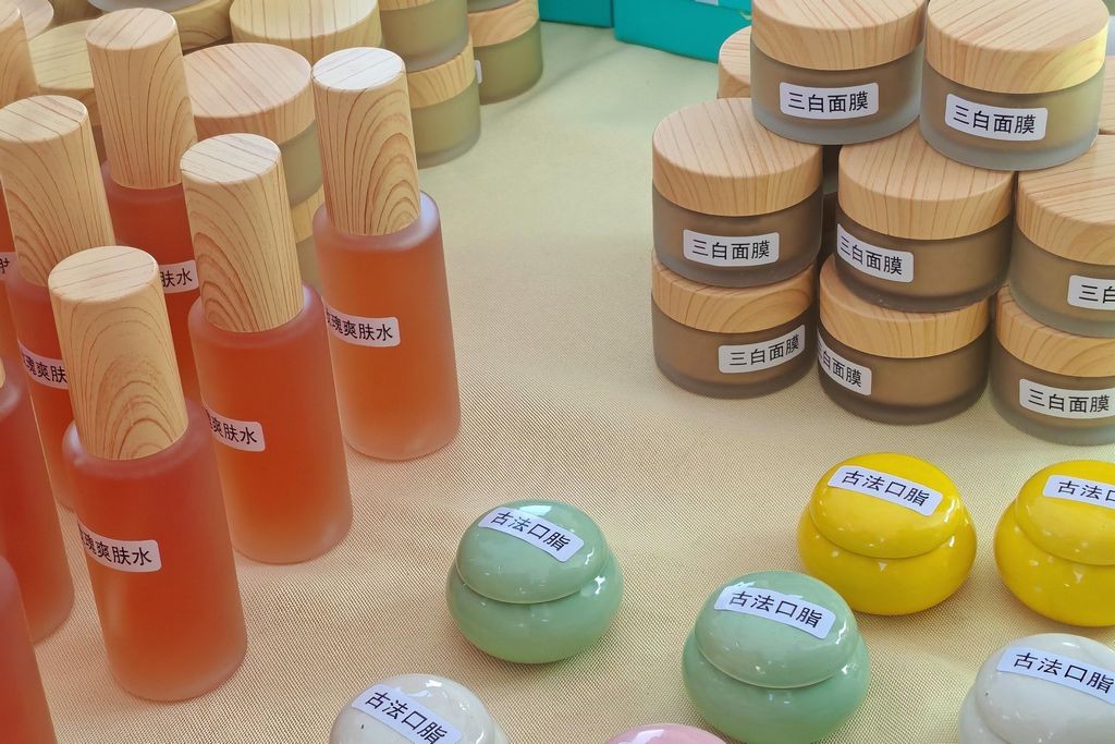 “中药养颜·古方化妆品”项目共有黄芪霜、三白面膜、古法口脂、玫瑰爽肤水四种产品。产品制作由老师指导,学生各司其职,负责产品开发、配方调制、包装设计、产品定价等工作,过程中体会到了将专业知识转化为实际产品的成就感与乐趣。