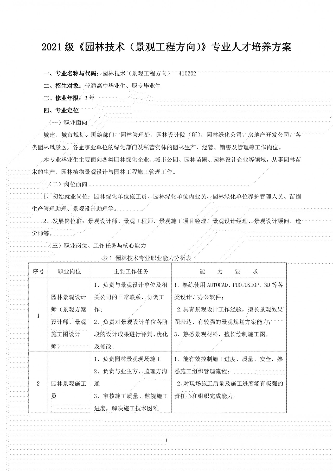 2021 级《园林技术》专业人才培养方案