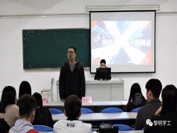 12月24日,商务系在阶梯六教室召开本学期最后一次学生干部例会。商务系党支部书记毛永千、辅导员何群、黄晓梅,以及商务系两委会学生干部及16、17级各班班长、团支书、学委和劳委参加本次会议。