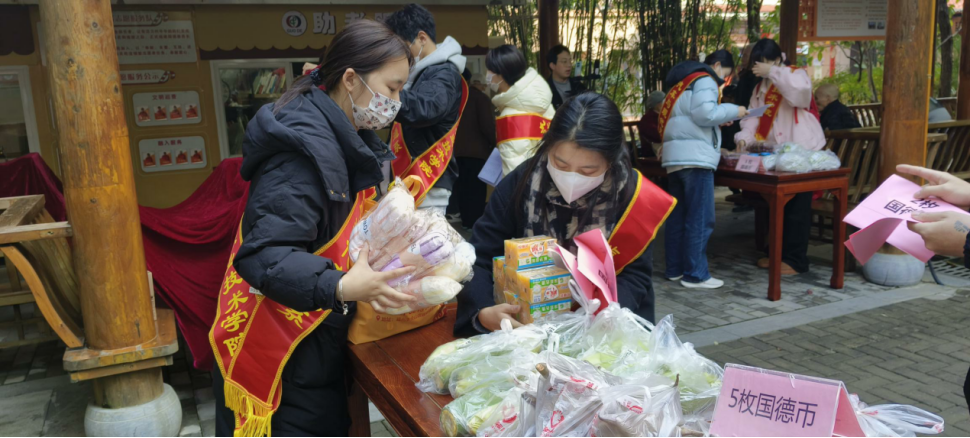 活动当日,恰逢康养中心举办丰富老年人生活的赶集日活动。现场热闹非凡,摊位琳琅满目。志愿者们一抵达,便迅速投身活动,协助主办方开展工作。他们有的帮忙布置摊位,摆放商品;有的引导老人有序购物,耐心为老人介绍各类物品;还有的陪伴在老人身边,帮忙拎东西,时不时与老人谈笑风生。