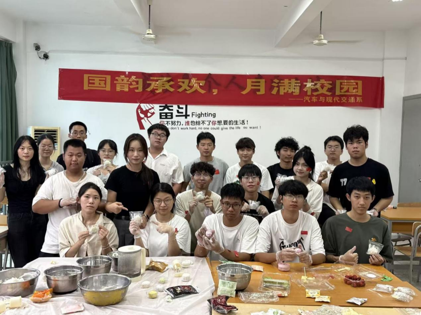 金秋九月,丹桂飘香,在国庆节与中秋节双节同庆的美好时节,福州黎明职业技术学院汽车与现代交通系学生会于 2025 年 9 月 29 日 16:30,在综合楼 421 教室成功举办 “国韵承欢,月满校园” 主题活动。系两委一会干部齐聚一堂,以手作月饼的方式共话团圆、共抒家国情怀。