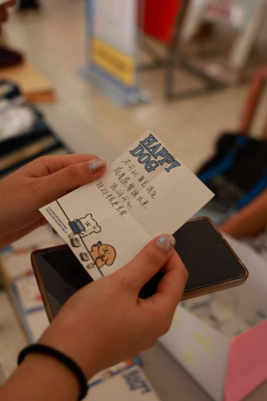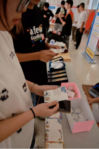 活动现场构建了一个独特的情感交流平台,同学们通过匿名书写感谢与鼓励,将日常生活中的善意转化为文字,完成了一次真诚的情感传递。而随机交换“温暖盲盒”的设计,则让每一位参与者都能成为陌生善意的接收者。这一“给予”与“获得”并行的方式,不仅实现了温暖的双向流动,更在无形中强化了同学之间的情感联结,使鼓励与感恩成为校园氛围中自然流淌的力量。