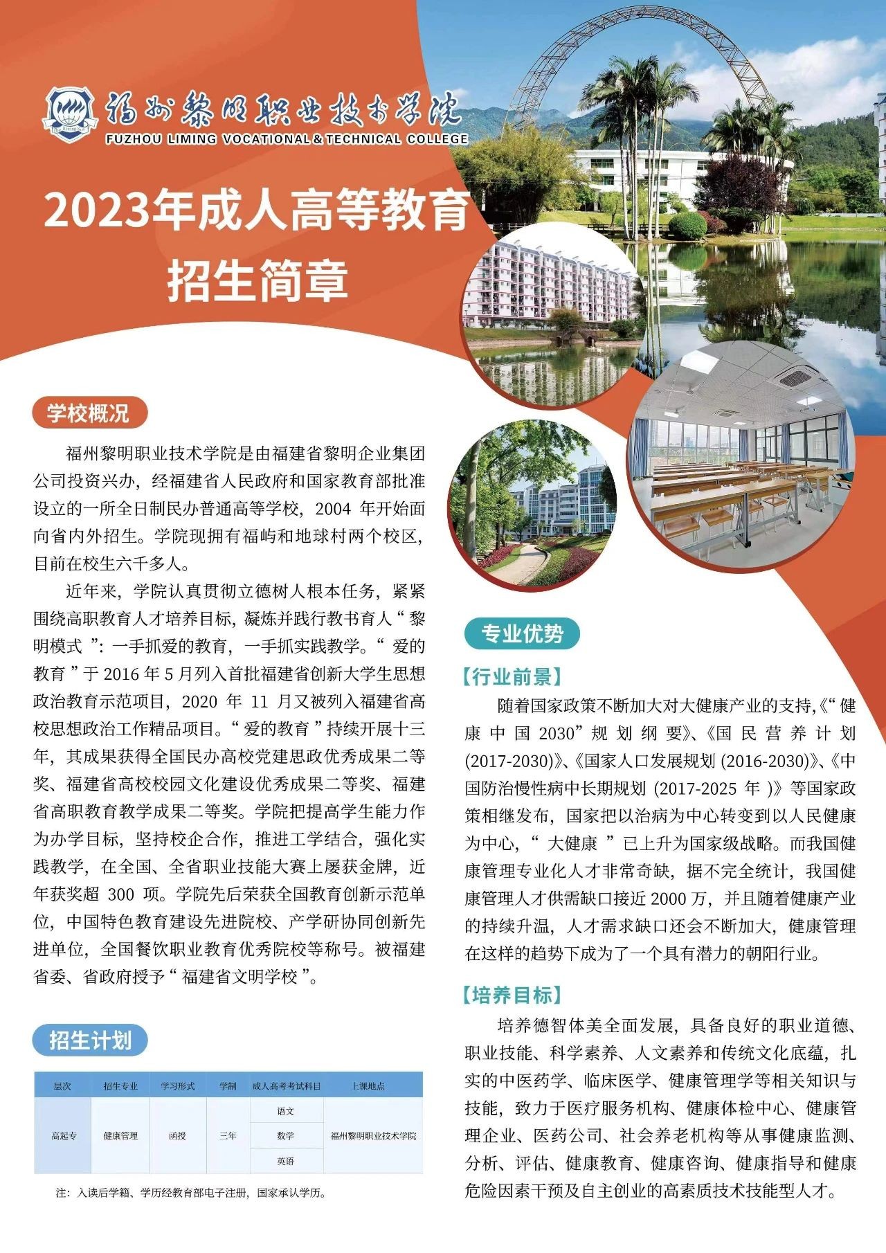 福州黎明职业技术学院2023成人高等教育招生简章