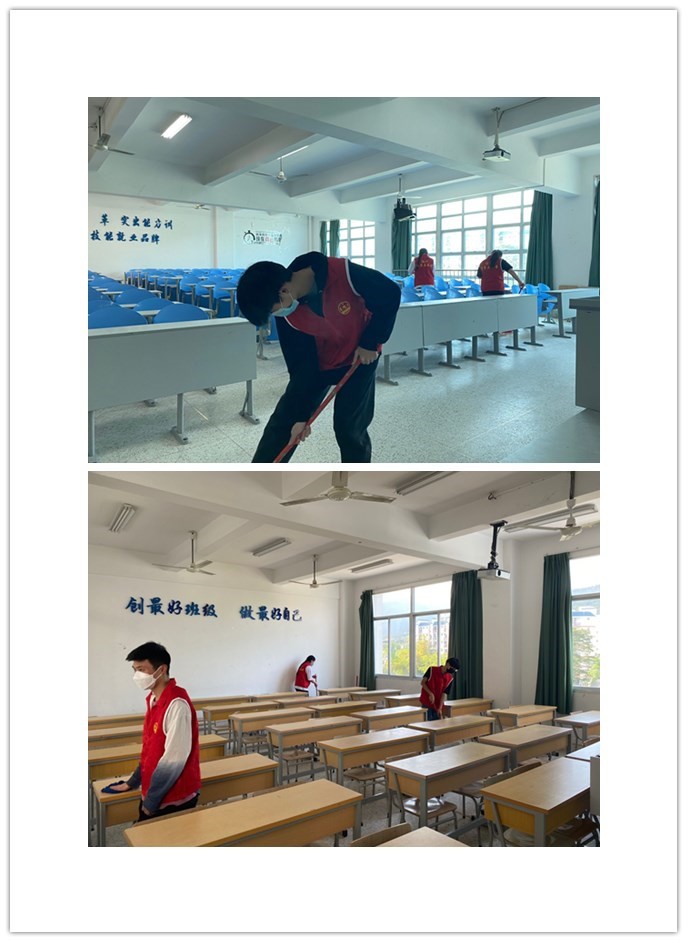 当天下午,我系党员以及积极分子们穿上志愿者服装,他们秉承着“热爱校园,无私奉献”的理念带上消毒水等卫生工具来到教室,逐一对桌椅、讲台等进行擦拭,大家认真对待自己被分配到的工作,对每个角落都进行消杀,他们希望在次日能给师生们提供个干净卫生的环境进行教学活动。他们“疫”不容辞,“疫”无反顾地投身于工作中,用行动诠释了在新时代下作为党员的责任和担当。