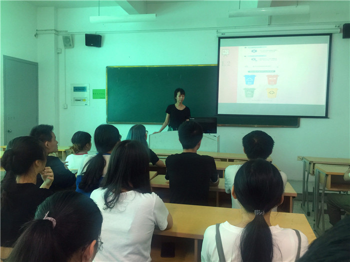 活动开始,党支部书记林鸿燕发起垃圾分类倡议,倡议党员及党员志愿者要发挥模范带头作用,自觉进行垃圾分类,努力践行绿色低碳生活理念。党员们在“关于积极支持和践行垃圾分类”的倡议书上郑重写下自己的姓名,承诺带头争当垃圾分类的先行者、宣传者和监督者。紧接着党员志愿者们从如今社会的环境现状入手,为支部各班学生详细介绍了垃圾四分类的知识,并通过PPT图文并茂地讲解,使大家对垃圾分类有了进一步的认识,也体会到了垃圾分类的重要性。