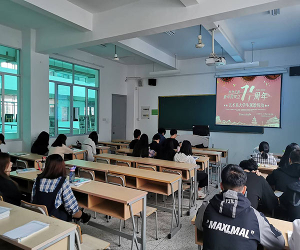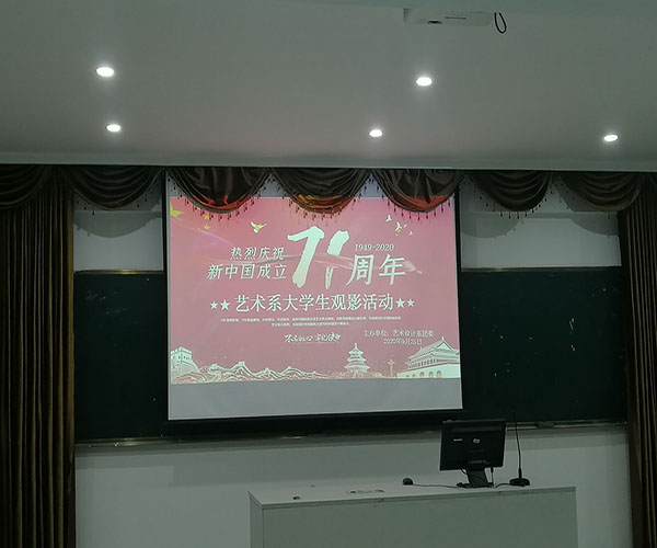 2020年9月25日晚上19点,我系团委在综合楼阶梯二教室(207)举办了“热烈庆祝新中国成立71周年”大学生观影活动。此次活动响应学院号召,在不大量聚集人群的要求下,做到了观影人数不超过50人,且隔位就座,让同学们有了非常健康的观影体验。