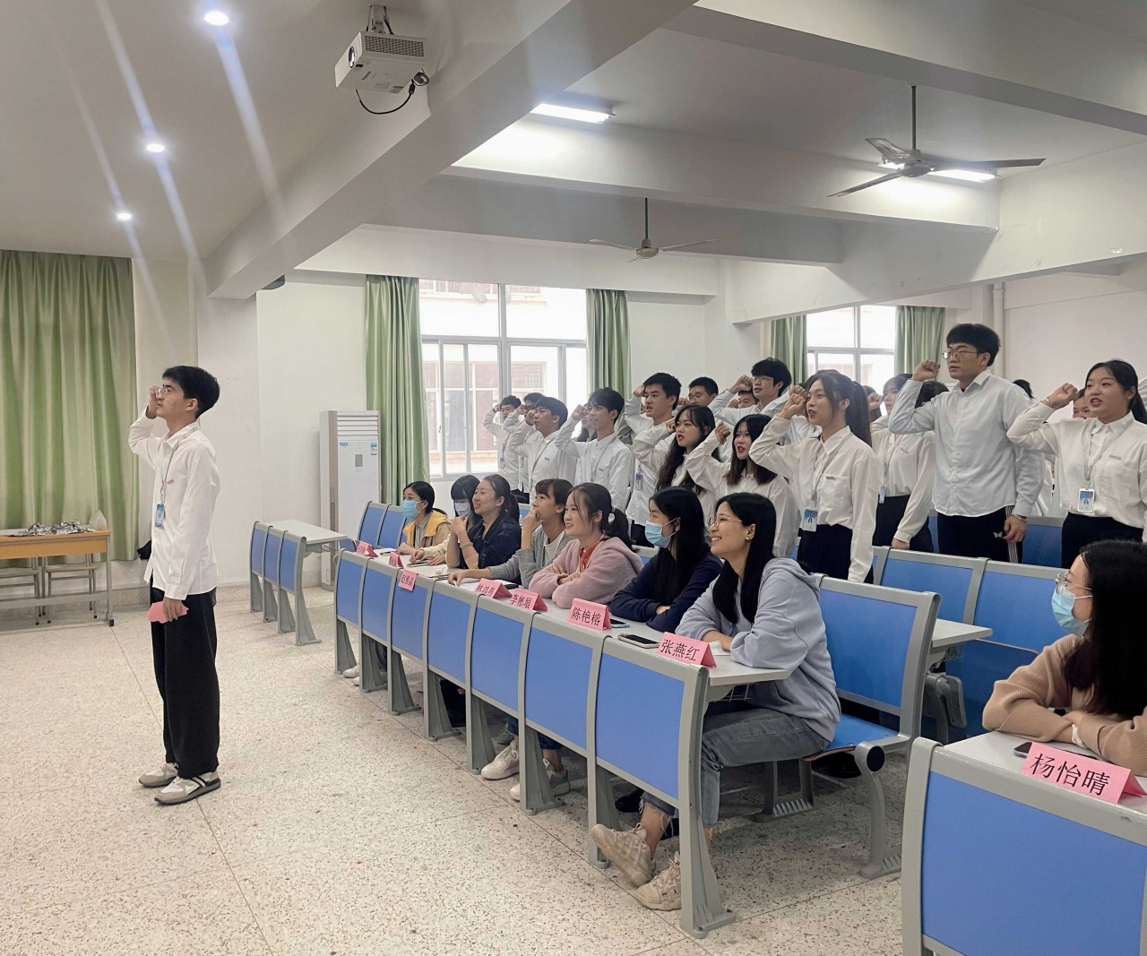 为了更好地向我系学生工作队伍注入新鲜血液和蓬勃活力、顺利完成新老生交替,2021年11月4日中午12时30分,我系第十一届“两委一会”授牌仪式暨第一次全体大会在综合楼208教室隆重举行。我系主任赵雅晶老师、系党支部书记林鸿燕老师、系团总支副书记李彬垠老师、各专业辅导员以及系“两委一会”学生干部参加了本次活动。