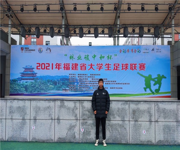 这是郭家兴同学第一次参加这种大型的省级联赛的裁判员工作,郭家兴同学课余时间也在福州市参加各类的校园联赛等比赛的裁判员工作。在本次的大学生足球联赛中,郭家兴同学表现优异,出生于2003年的他在场上动作的规范、位置选择好、判罚准确性高,以及其工作认真严谨的态度让裁委会的委员们对他的评价有着一致好评,得到了裁判前辈的表扬和运动队的认可。同时本次活动他获得了了2021届林业碳中和杯福建省大学生足球联赛中“最佳裁判员”的荣誉证书及称号。