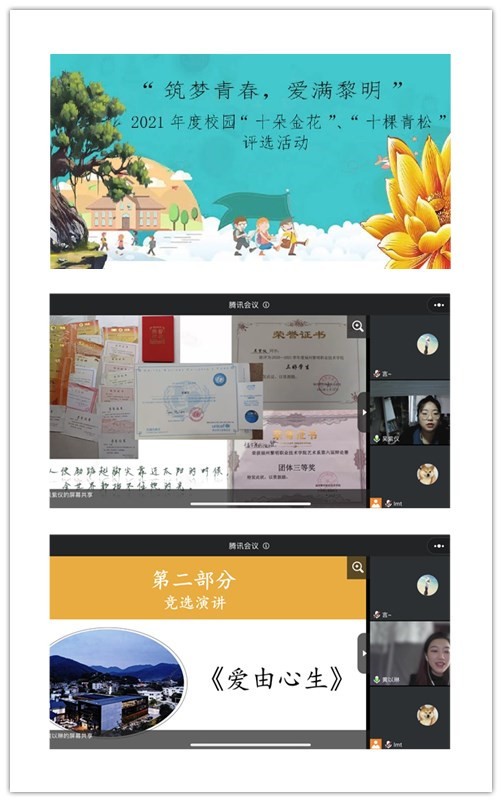 为庆祝共产党成立一百周年,发扬学院“爱的教育”理念,我系于2022年3月24日举行“十朵金花,十棵青松”评选活动。虽然由于疫情原因,活动的办理流程皆为线上,但这依旧挡不住各位选手积极的热情,镜头前的大家皆是自信满满,脸上充满了洋溢。