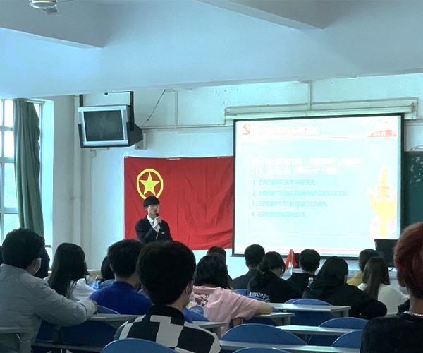 团课活动最开始,由主持人配合大屏内容进行引人入胜的讲解,以图文并茂的方式带着大家了解应该怎么样铸牢中华民族共同体意识。另外,团课期间所设定的问答环节同样精彩且意义深刻,同学们踊跃地参与其中,在认真答题的同时,也对中华民族共同体意识有了更深刻的理解和感悟。团课期间提到的十九届六中全会中习总书记的讲话也是为了让同学更好的认识身为学生我们应该如何去配合和努力响应这种民族团结的关系。活动举行过半,屏幕上呈现着鲜红的五星红旗,团支部书记陈富权同学带领大家全体起立,教室中回荡着同学们激昂的宣誓,宣誓结束以后由我系团总支书记林鸿燕老师为本次团课进行了点评,她通过列举不同的事例加深同学们对民族团结的理解,进一步激发同学们的爱国情怀,鼓励同学们增强文化认同,为中华民族的团结统一献出自己的一份力。