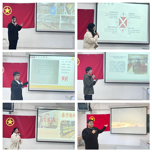 六位同学依次上台来分享了他们在这个寒假社会实践的经历,过程以及在社会实践中学到的知识,总的来说每位同学都深刻的认识到了在课本中学习到的知识终究是“死”的,只有走入社会,进行实践之后,才能让自己所学习到的知识“活”起来。身为新时代的大学生我们要积极贯彻习近平新时代中国特色社会主义思想,积极响应对当代青年的最新期望。