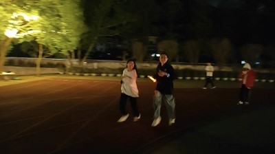 活动伊始,志愿者指引参赛学生前往签到处领取荧光手环。活动负责人宣读规则和注意事项,并带领参赛学生进行热身运动及跑步前的准备活动。夜色渐深,参加夜跑的同学们戴着荧光装备有序在起跑点准备,一声哨声后奋力开跑。一路上荧光熠熠、星光点点,同学们以荧光点燃激情,借脚步丈量青春。