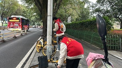志愿者们在路口共同维护交通秩序,对行人闯红灯、横穿马路等违反交通秩序行为进行劝阻和纠正,志愿者们还注意到一些老人过马路时行动缓慢,志愿者们及时伸出援助之手,帮助他们安全过马路。同时志愿者们发现,部分共享单车被随意停放在道路旁,不仅影响了市容,还可能造成交通堵塞。为了改善这一状况,志愿者们将周边乱堆放的单车一辆一辆推至指定位置整齐停放,让道路恢复了畅通。