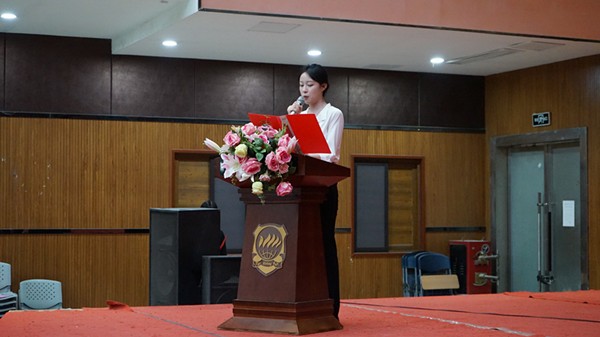 授牌结束后,新干事代表黄诗雨同学表态,将以学徒之心扛责、服务之心履职、团结之心聚力,愿与全体干事携手奋进,圆满完成新学年系部工作。