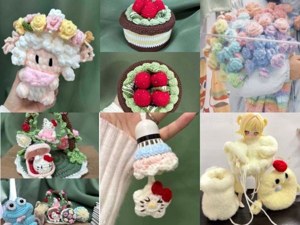 综合楼前草坪之上,创意与巧思交织汇聚。现场特设报名点位,专业指导老师亲临亲授钩针编织技法。活动分设教师组与学生组,创作过程中,师生们将奇思妙想凝于针脚、融于绒线,作品主题昂扬、形式多元,玲珑挂饰与实用好物兼具,每一件成品皆是心血与巧思的凝练。