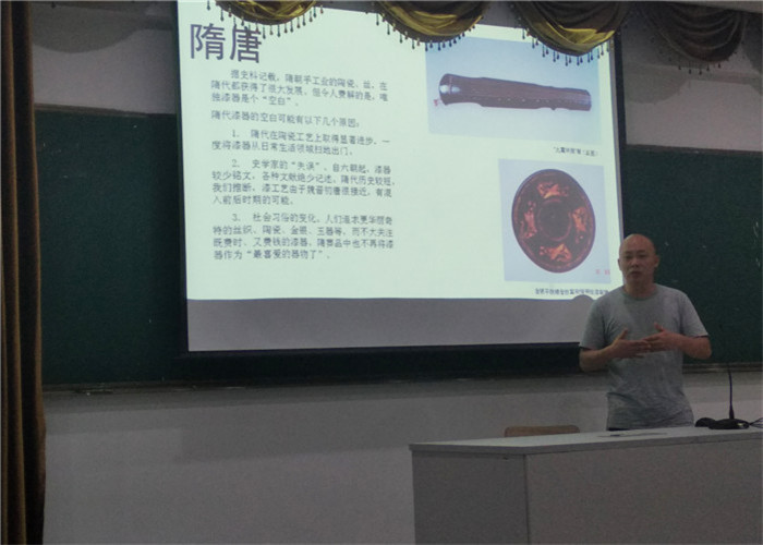 为深化对中华优秀传统文化重要性的认识,深入挖掘中华优秀传统工艺文化的价值内涵,进一步增强广大我院学生的文化自觉和文化自信。6月12日下午,由院团委主办、艺术设计系学生会承办的“扬传统文化,品漆艺之美”福州三宝之漆艺文化专题讲座在综合楼阶梯二教室成功举办。本次讲座邀请了闽江学院漆艺文化研究中心曾志宏老师为我们分享漆艺文化。参加讲座的嘉宾有院团委副书记王瀚程老师及艺术设计系全体教师,还有各系学生代表。