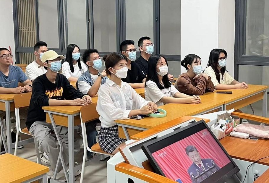 此次通过线上和线下同步观看,师生们认真聆听,感触颇深,并在看完视频后积极讨论分享心得体会。中国共产党第二十次全国代表大会开幕,砥砺奋进的中国共产党人,矢志为中国人民谋幸福、为中华民族谋复兴。