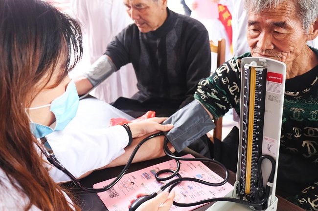 活动通过悬挂横幅、发放宣传手册和福州话讲解等方式向来往的村民宣传社区健康常识。当天服务村民近百人,热心的志愿者们也受到广大村民的热情欢迎。志愿者们尽职尽责,对村民进行血压测量,针对每个村民的不同情况,耐心地叮嘱他们各种日常注意事项,详细介绍预防老年人常见疾病知识,提出合理的膳食、运动等生活指导,做到“未病先防”“既病防变”“预后防复”等。