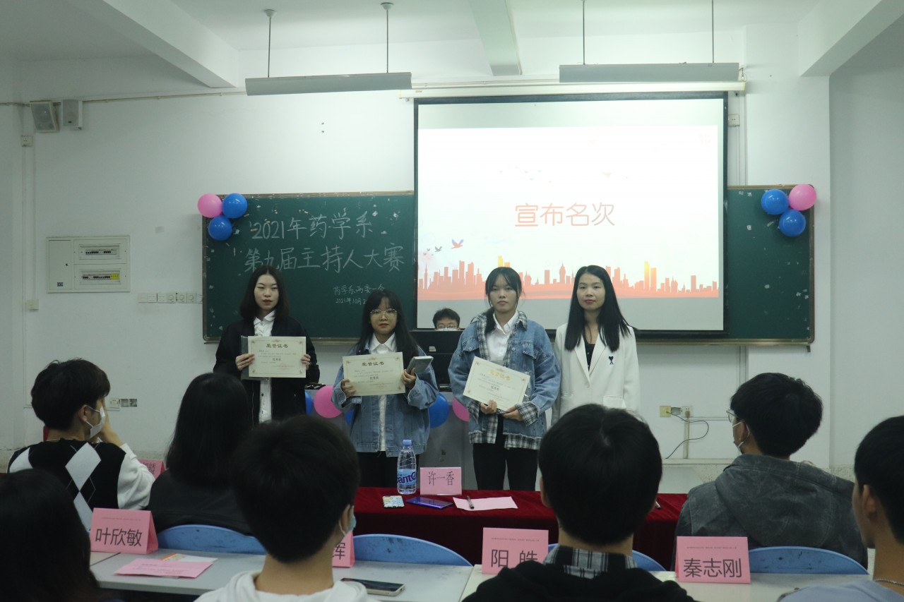 2021年10月24日晚上六点三十分在阶三教室举行由药学系主办的主持人大赛。莅临此次大赛的评委有药学系团总支副书记胡钰雯老师、福建新知教育许一香老师、学生会主席王朝磷、学生会副主席钟源。本次活动本着为了更好的锻炼提高大学生的语言沟通能力,自我展示能力以及加强同学们的素质拓展能力的初衷。
