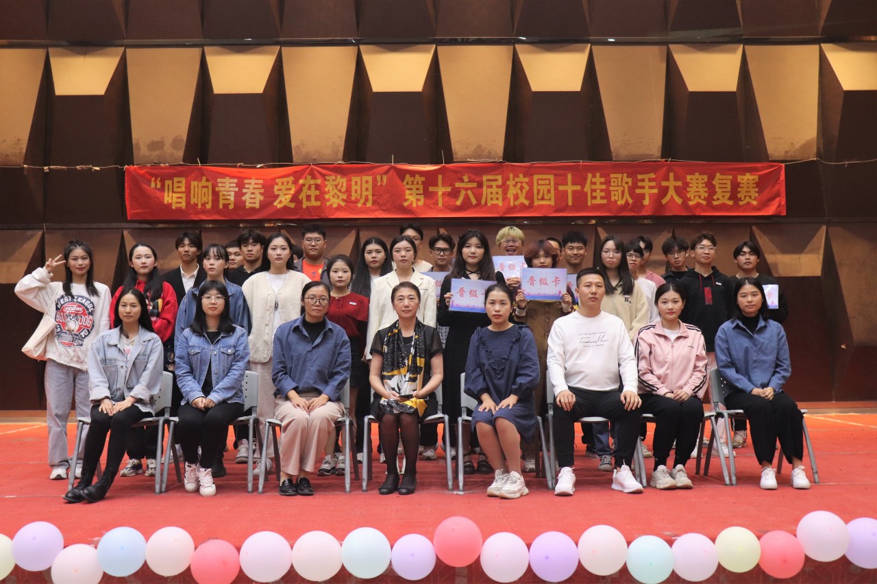 最后,在工作人员的引领下,全体参赛选手和评委合影留恋。今天我们激情四射,共同唱响青春的旋律。今天我们激昂青春,共同展现青年大学生昂扬向上的精神面貌!第十六届校园十佳歌手大赛复赛取得圆满成功。