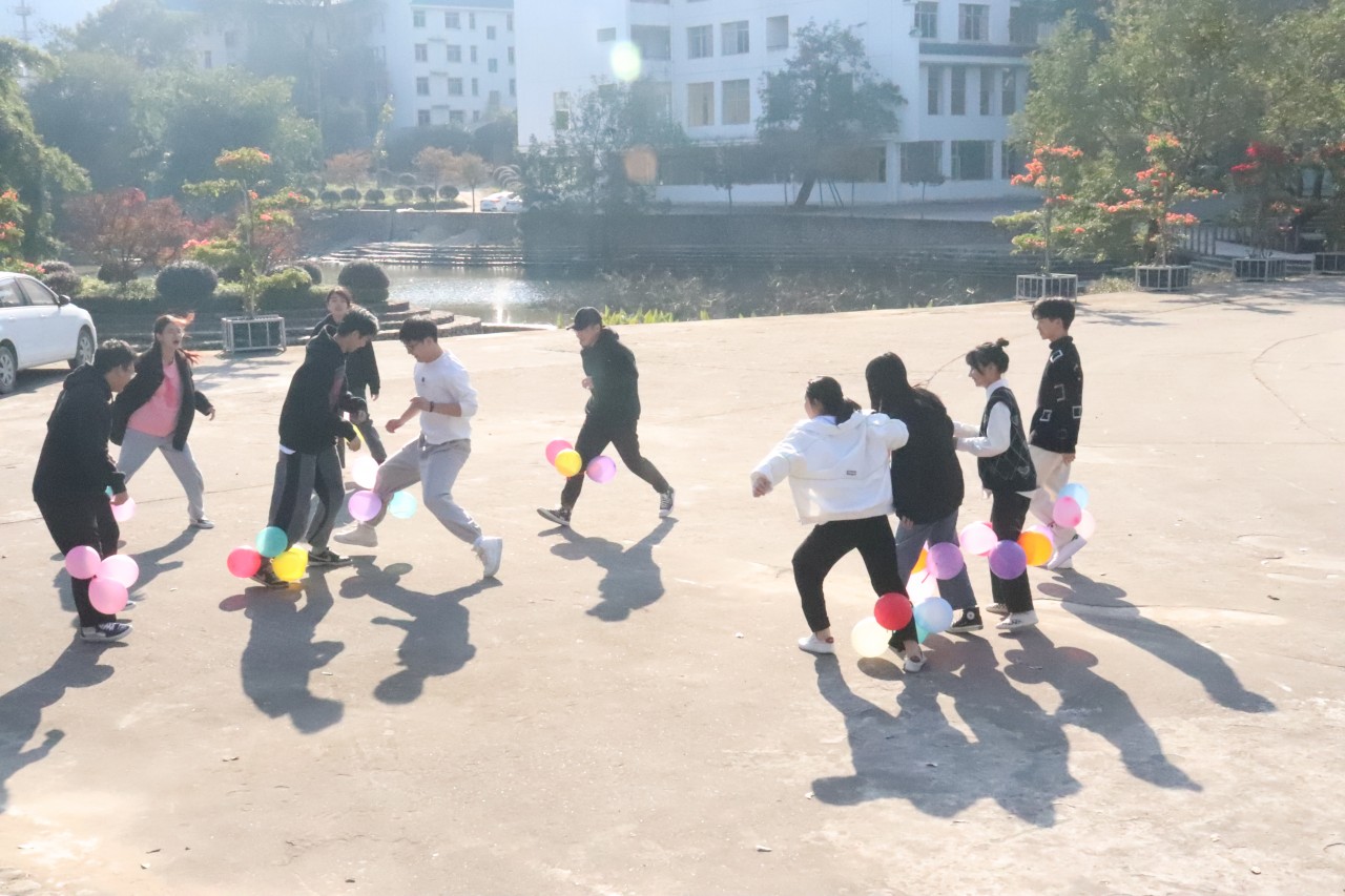 活动开始前由自律会副主席冯胜向大家介绍团建小游戏,接着由主持人宣传团建活动的流程以及游戏规则。游戏第一环节是踩气球,每个人都在保护自己的气球不破的同时努力踩破别人的气球,加强团队的团结互助。接下来进行的游戏有不倒森林、爱的抱抱等,同学们积极参加每项游戏,体验游戏带来的乐趣,最后以车轮滚滚小游戏结束这次团建,同学们步伐一致的向前迈进。大家团结一致,互帮互助,共同完成每项游戏,并收获零食礼包。