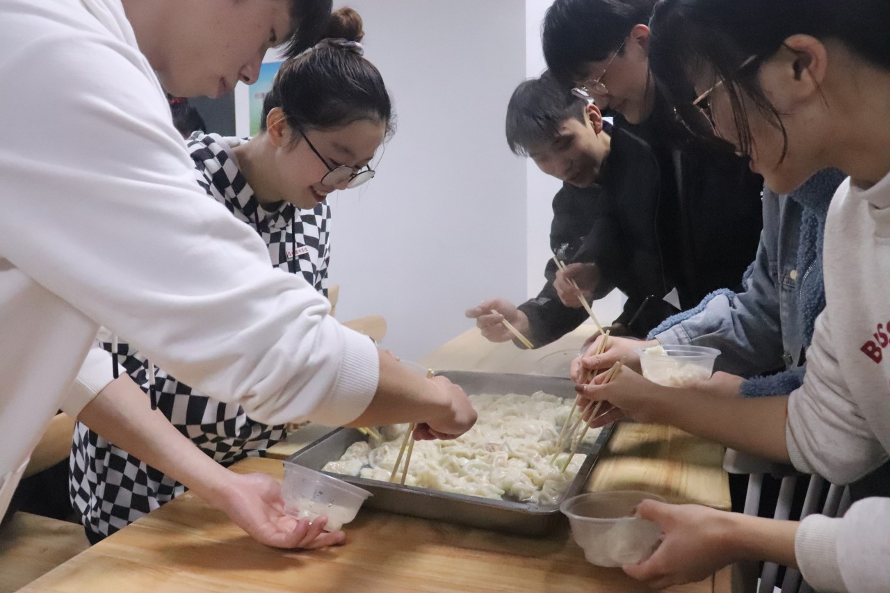 经过大家不懈努力,热气腾腾的饺子和汤圆在大家的期待中被端上了餐桌,大家互相分享包的饺子和汤圆,感受着家温暖。在吃饺子的过程中,还有两系同学为大家带来冬至歌舞表演,最后王新华老师一曲《爱拼才会赢》更是将气氛拉到高潮,王书记讲到这首歌送给各位同学,希望各位同学在人生道路上能不断拼搏不断成长,活动现场时刻洋溢着幸福与欢乐。