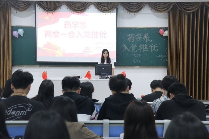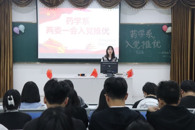 为了加强党的队伍建设,充实党的新生力量的需要,激发广大团员青年的政治热情,充实壮大党的后备力量。药学系于2022年5月3日晚上19:00,在综合楼阶梯二(207)教室成功召开入党推优会议,以公平公正公开的方式推选积极分子,参加本次推优大会的有药学系“两委一会”全体团员。会议由团总支学生副书记曾琳婷主持。