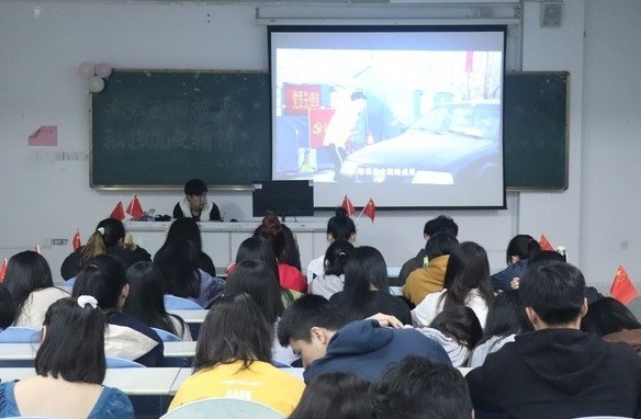 活动开始时由团总支青年部干事陈婧婷作为主持人,为大家介绍了开展此次五四青年节活动的目的,为了使同学们更好的了解“高举五四旗帜,弘扬抗疫精神”的主题,播放了与此相关的影片。