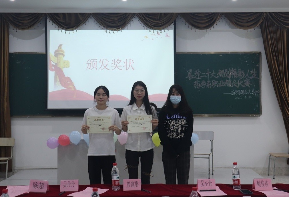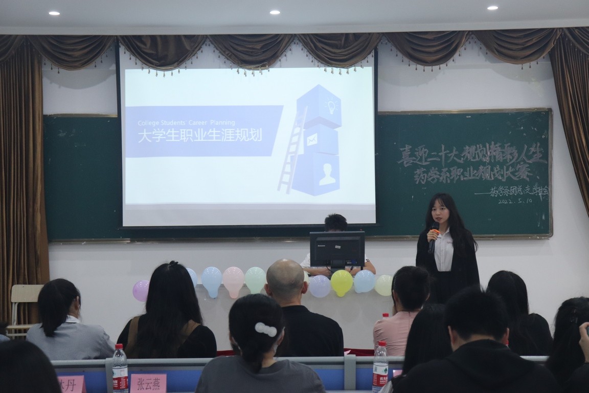 为了引导同学们正确定位自己的发展方向,树立正确的成才观、择业观和就业观,提高自己的综合素质和就业创业能力,药学系举办了以“喜迎二十大,规划精彩人生”为主题的职业生涯规划初赛。大赛于2022年5月10日下午2:30在207教室进行。出席本次大赛的有药学系主任曾建雄老师、团总支副书记鲍佳佳老师、辅导员林玫老师以及药学系各位老师们。