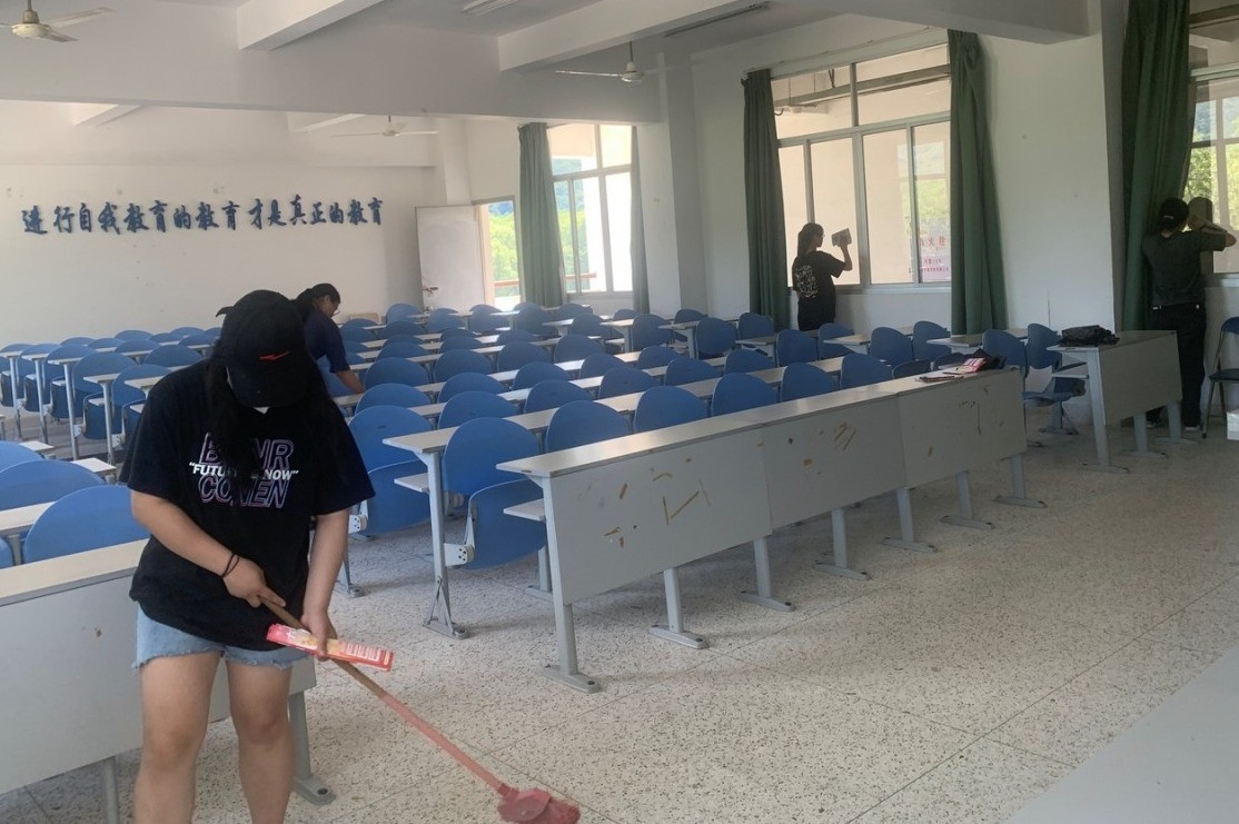 2022年9月4日中午8:00由药学系各个班的劳动委员带领同学们对各自的责任教室进行打扫。各班学生分工明确,有的打扫教室,有的打水,有的擦窗,大家充分发扬不怕苦、不怕脏的精神,不放过任何一个卫生死角。