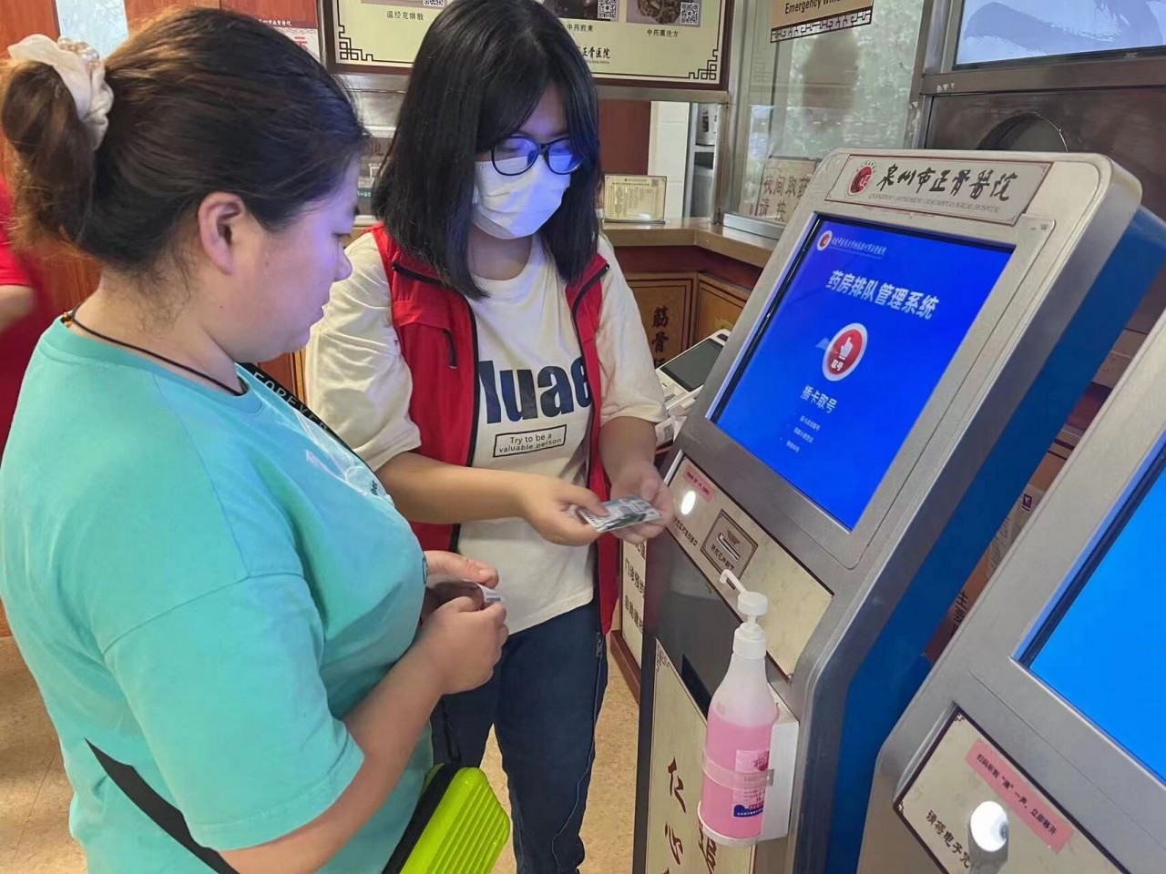 志愿者们经过严格的岗前培训后,在医院的安排下,有到门诊咨询处引导患者签到的,有协助患者及其家属操作自助服务机的等等。 刚开始,志愿者们对操作流程还不熟悉,但在医护人员的帮助下完成了几个患者服务后,他们很快找到了方法,并积极总结出工作要领,一下子就从“小白”化身成导诊“高手”,为患者就医提供了极大的便利。志愿者有时还会“脱岗”,亲自陪伴一些独自来就医的老人及特殊人士挂号就诊,志愿者们的耐心和热心,让他们感觉到如家人般的亲切和温暖,进一步拉近医患之间的距离,收到了患者们的热烈欢迎和一致好评。