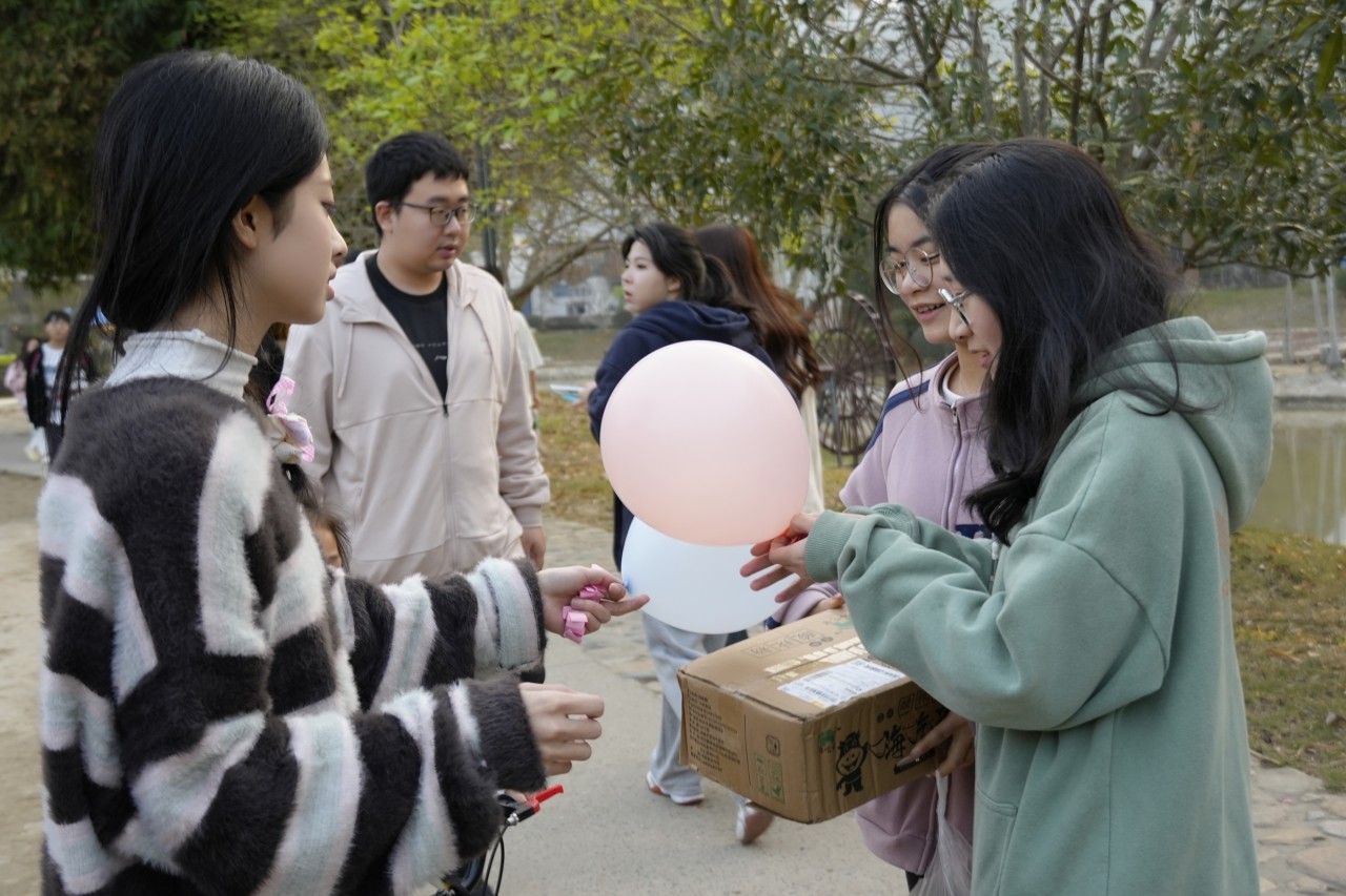 活动过程中充满了欢声笑语,不时传来气球“嘭嘭”爆破的声音,丝毫没有使同学们的热情减少。几位参与活动的同学还表示这是她们今年收到的一份很有意义的礼物。