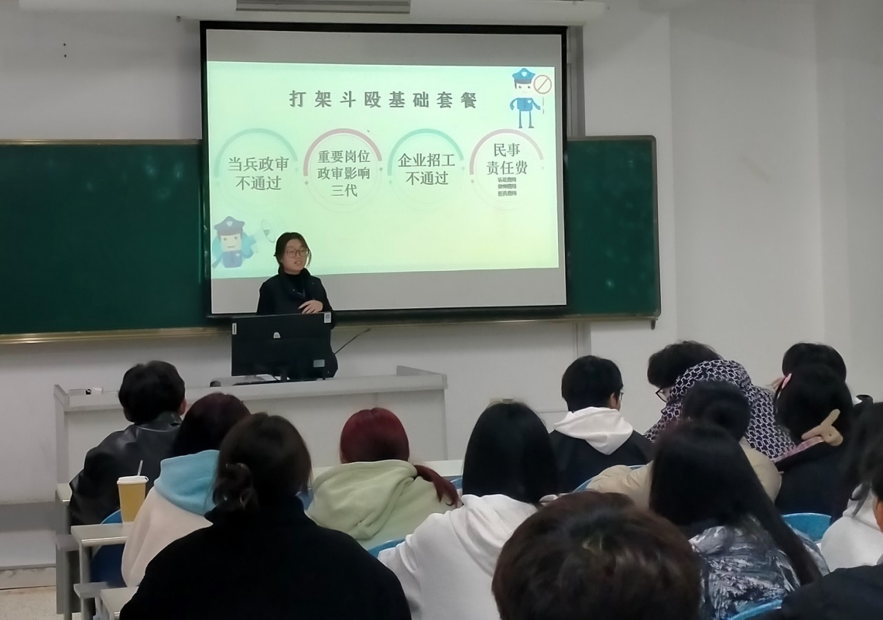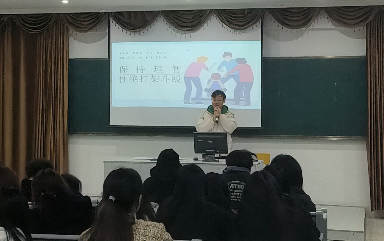 严肃校规校纪,规范学生行为,加强法制教育,建设平安和谐校园,促进学生身心健康发展,并进一步提高学生预防校园霸凌意识,杜绝校园恶性暴力事件发生,药学与健康管理系全体辅导员于2024年3月10日晚上19:00在各个教室开展关于“文明校园——杜绝打架斗殴”主题教育班会。