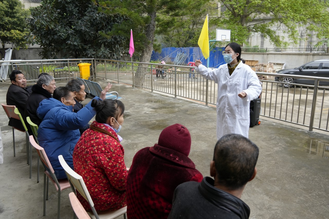 活动开始,志愿者们携带者学院准备的小礼物在养老院前集合,在社工带领下给疗养院的爷爷奶奶进行血压测量。随后,志愿者们分成多组,自行与爷爷奶奶交流,解答他们提出的医疗、护理健康方面的疑问,告知他们要定期体检,合理膳食,要养成健康的生活习惯,让疗养院的老人深入了解日常保健与防控的相关知识,建立健康生活方式,养成健康生活习惯。紧接着进入游戏环节,志愿者们带领爷爷奶奶进行健康锻炼、强身健体的小游戏,给每位爷爷奶奶分发小礼品。现场氛围逐渐火热,志愿者们纷纷献上自己带来的才艺表演。志愿者们都表现得十分出色,爷爷奶奶们连连称赞。-u8iwt.jpg)