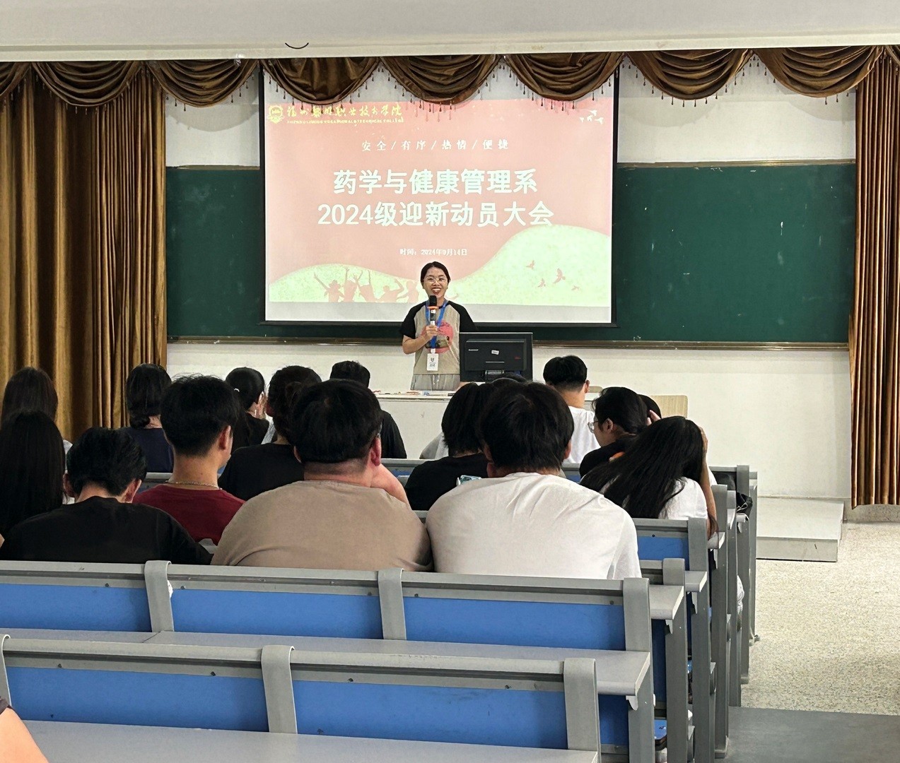 为扎实做好新生报到工作,展现我系师生的良好形象。药学与健康管理于2024年9月14日中午12:00在阶级二教室召开“药学与健康管理系2024级迎新动员大会”参与本次大会的成员有药学与健康管理系党支部书记郑爱清、团总支副书记黄星、辅导员林扬智、柯枝敏、曹文干以及两委一会全体干部和辅导员助理、志愿者等。