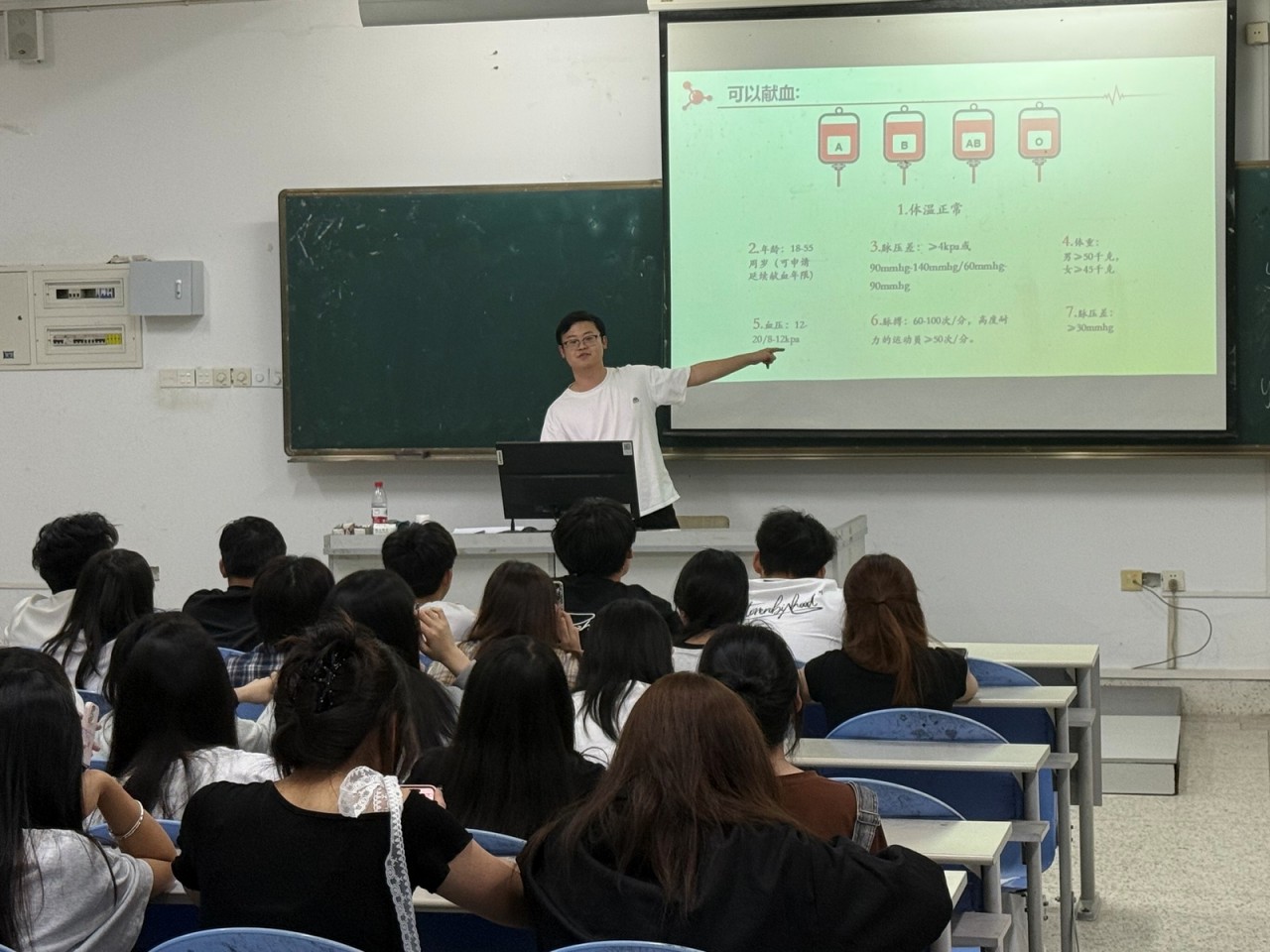 在当今社会,无偿献血已然成为衡量一个城市文明程度的重要标志之一,为了增强同学们的社会责任感,弘扬奉献、友爱、互助、进步的志愿精神。药学与健康管理系2025年4月13日开展关于“关爱生命,爱心献血”的主题班会活动。此次主题班会由辅导员黄星、柯枝敏、林扬智、李玲主讲,系全体同学参加了本次主题班会。