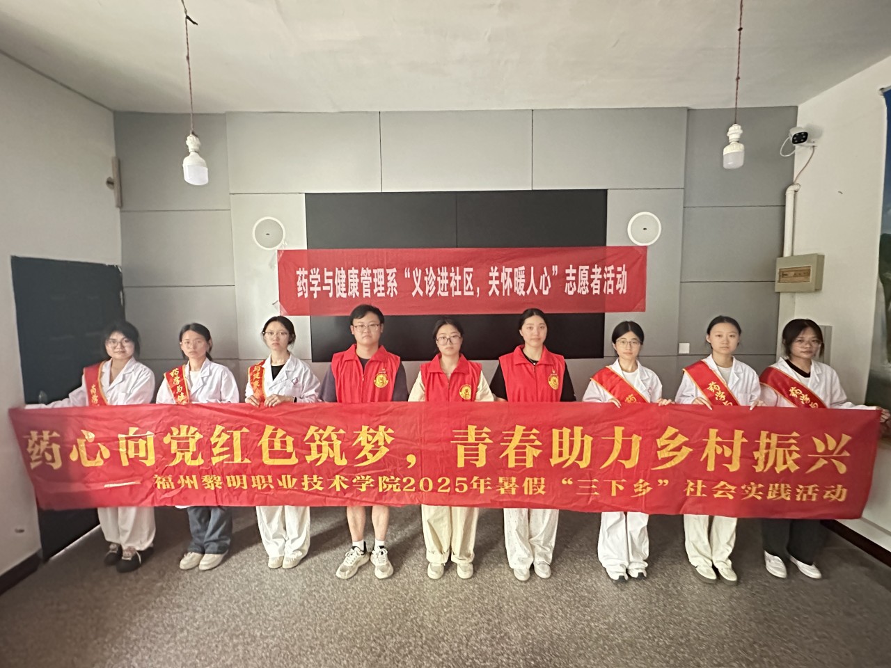 秉持着传承红色基因、践行高校社会服务使命的初心2025年7月4日,福州黎明职业技术学院药学与健康管理系,分别在三明市永安市西太云医智能康养中心、小陶镇五一村村委会开展了两场场意义非凡的“三下乡”义诊活动,为健康养老中心的老人以及五一村的长者们送去温暖与关怀,以专业关怀守护健康。