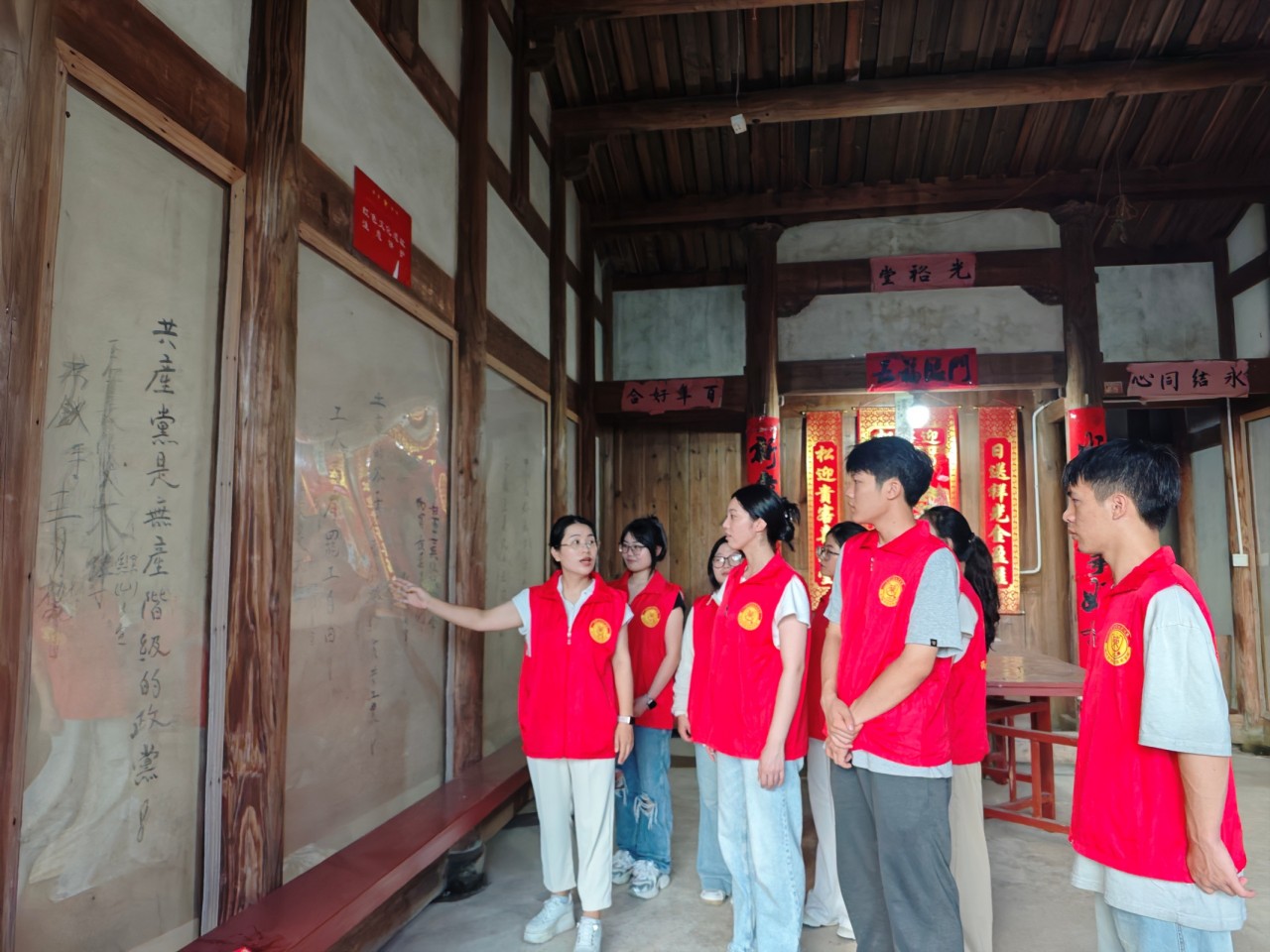 光裕堂藏着闽南建筑的岁月温度,更沉淀着红色记忆。光裕堂曾是革命宣传、动员群众的重要场所,堂内老标语残痕、史料展板见证着过往。团队以普通话和国家通用语言文字为关键纽带,以此深入挖掘光裕堂从抗战“地下联络点”到新时代“乡村红色教育站点”的红色背景,用规范语言梳理历史脉络,让散落在方言口述、老物件中的红色记忆“显影”。依托这一纽带,红色故事打破地域壁垒“走出去”,吸引学生接受红色教育,打响建设镇红色名片,为乡村文化振兴注入红色动能。-HFZNN.jpg)