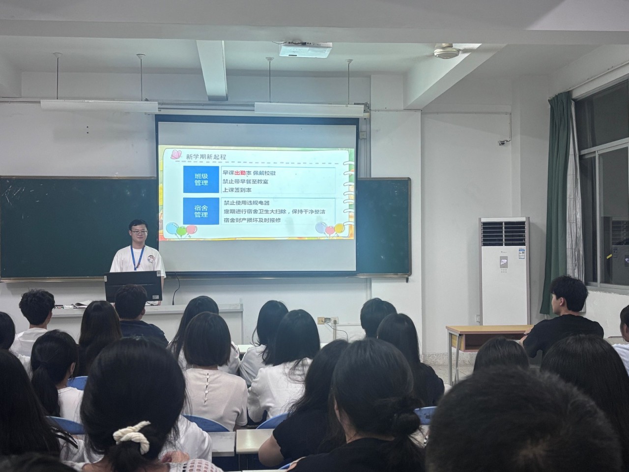 2025年9月7日晚,药学与健康管理系面向全体2024级学生开展“开学第一课”主题教育班会。本次班会课旨在通过思想引领、学业规划、心理健康、食品安全、防诈防骗等模块,帮助学生尽快适应返校生活。