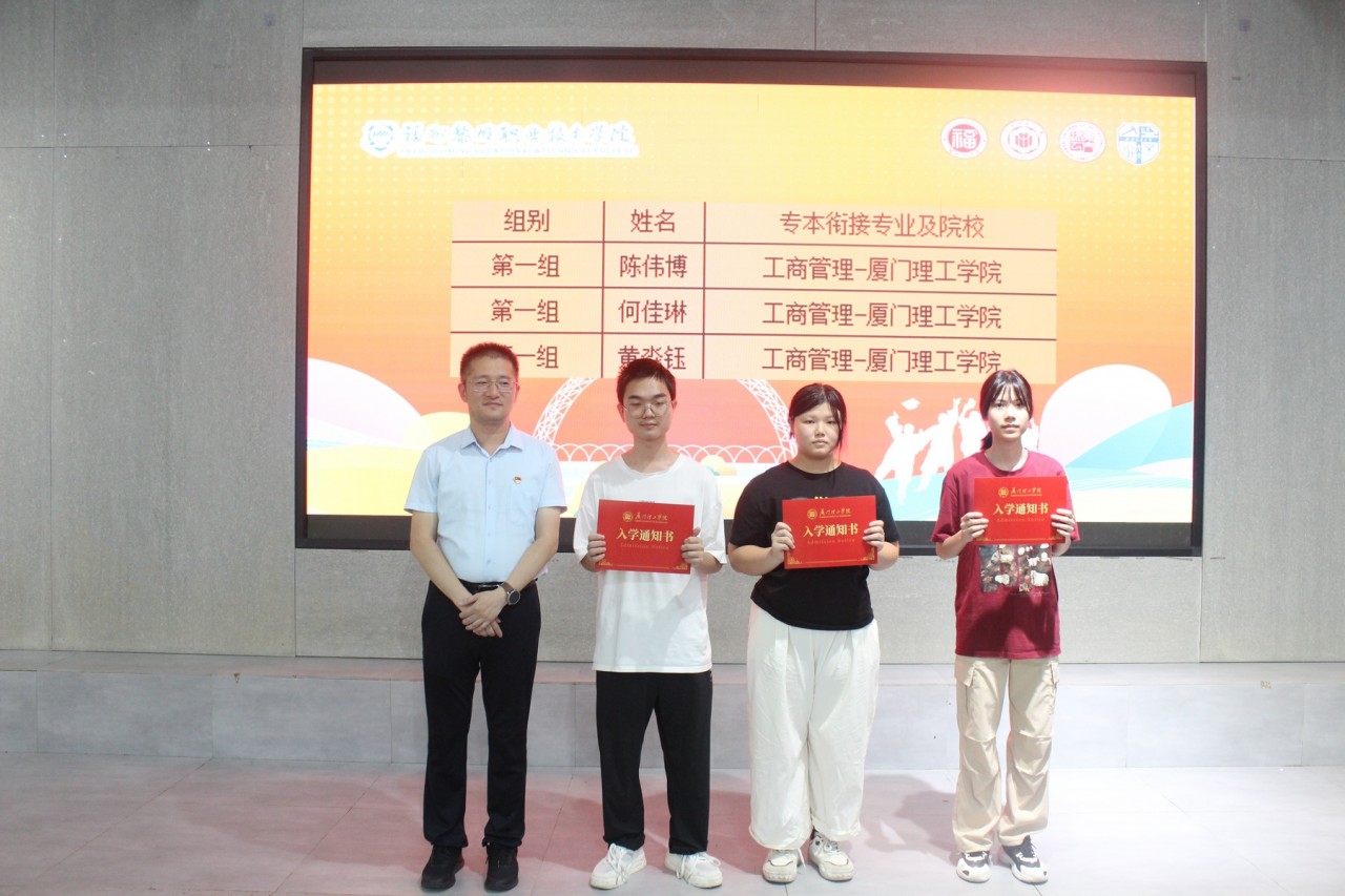 互动环节中,成功升本的学长学姐们领取入学通知书并且分享备考心得,从时间规划、重难点突破到心态调节提供实用建议。针对“跨专业报考可行性”“实习与备考平衡”等问题,教师团队逐一解答并给出个性化方案。答疑区前,同学们围绕学历认可度、就业前景等话题深入咨询,现场氛围热烈。