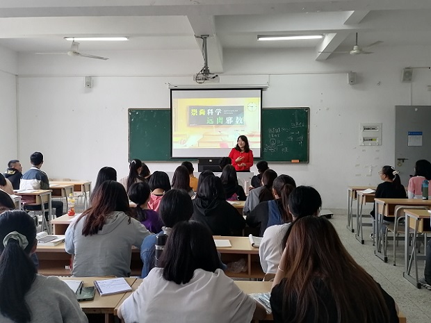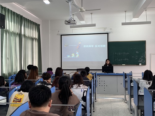 为了使我系在校大学生进一步提高识别、抵御和有效防范邪教的能力;培养我系在校大学生正确的世界观、人生观。我系于2020年10月26日晚在综合楼阶梯一教室开展了以“崇尚科学,反对邪教”为主题的主题班会。