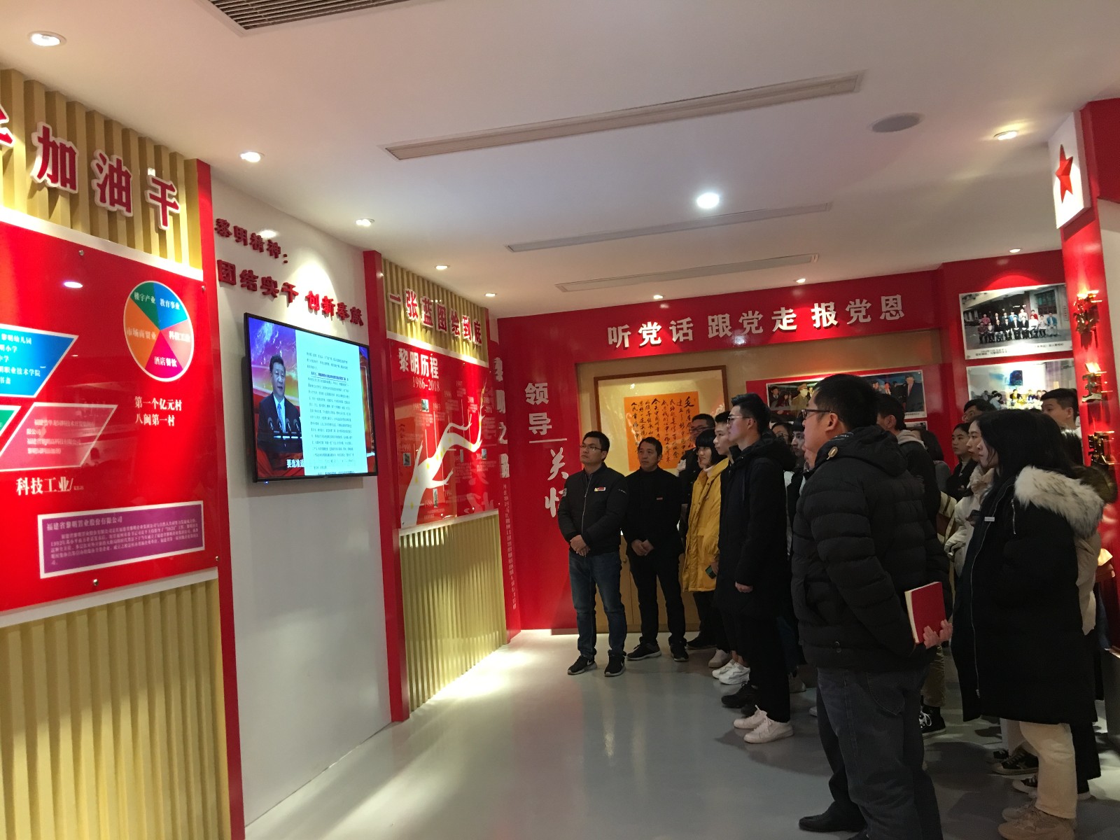 来到党建室门口,映入眼帘的黎明党建校史馆,不忘初心,牢记使命,庄严肃穆。进入党建室,认真聆听了黎明党建校史馆讲解员对黎明村党建工作的细致介绍,观看了黎明党建专题片,重点学习了黎明党建带企建、党建带村建、党建带教育等多方面的有效做法和成功经验,多角度深层次的体会黎明村党建工作特色。