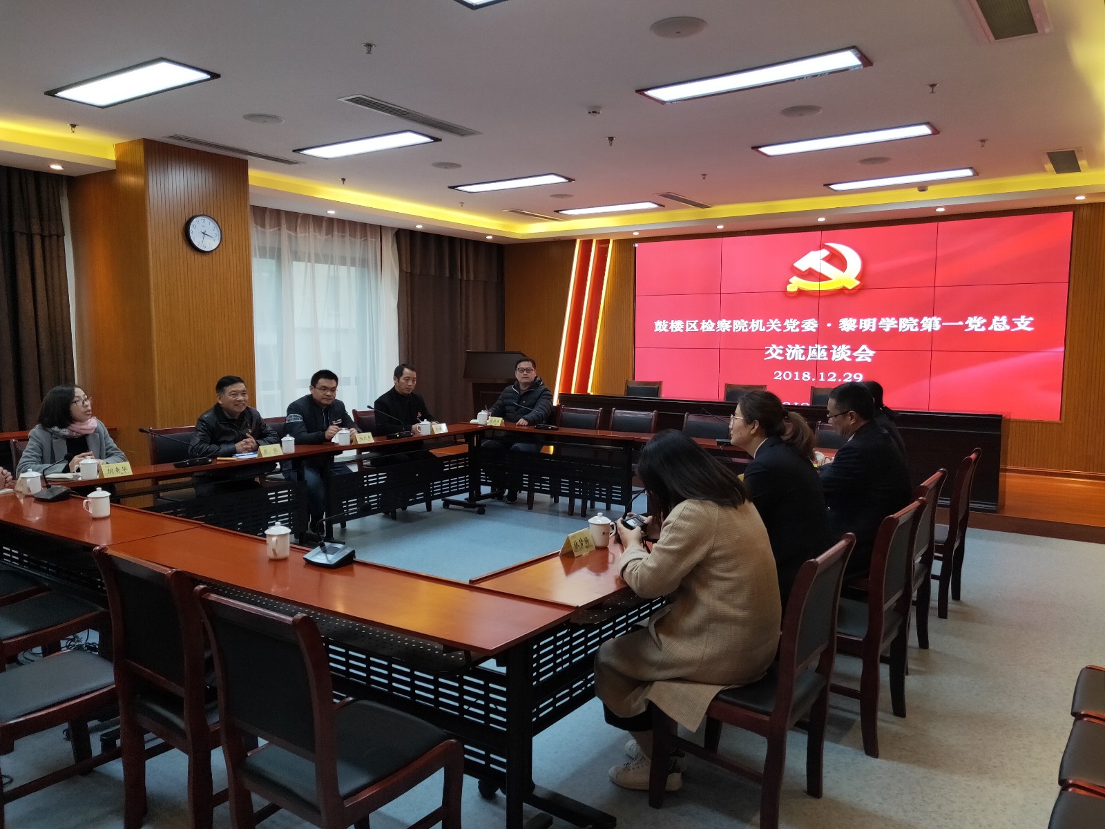 为深入学习贯彻习近平总书记系列重要讲话精神,引导广大党员干部不忘初心、牢记使命,奋发进取,砥砺前进,不断增强基层党支部的凝聚力和战斗力,更好的发挥党员先锋模范作用,2018年12月29日,学院第一党总支组织全体党员赴黎明集团党建室、鼓楼区检察院开展“忆初心明职责当先锋”为主题的党日活动,学院副院长杨光舟、学院董事肖熙及第一党总支45名同志参加了本次活动。