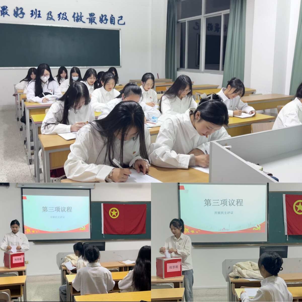 团支部书记、委员、其他团员依次发言,交流体会、查找不足,其他团员对其进行评议,肯定成绩、指出不足团支部书记李雅萱从具体学习计划、创新组织形式、提高协调能力三个方面对未来工作提出了改进方案,宣传委员林秋宸、组织委员詹雯婷及3位团小组成员吴宣儒、林澜、张思雨依次发言,向大家汇报并总结工作情况,其他团员对其进行评议,肯定成绩并指出不足。