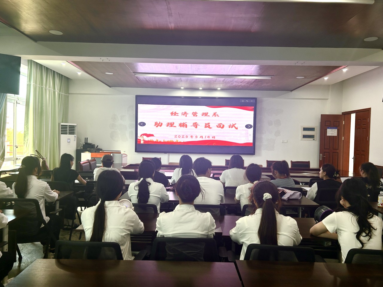 "用爱的微光点亮新生求学路"——在学院"爱的教育"理念指引下,5月14日傍晚,经济管理系2025级新生助导竞选活动在综合楼627教室温情启幕。系党总支副书记孙丽平携全体辅导员,与21位经严格选拔的候选人共同开启这场关于责任与爱的双向奔赴,通过构建"传帮带"育人新范式,为即将入学的"萌新"铺设温暖成长路。