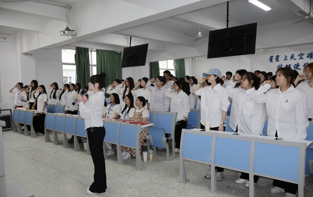 活动在合唱共青团听歌中开场。吴晓婕老师宣读新一届主席团成员名单,并为他们颁发聘书。主席团成员接过聘书,眼神坚定,现场掌声热烈,责任与使命得以传递。