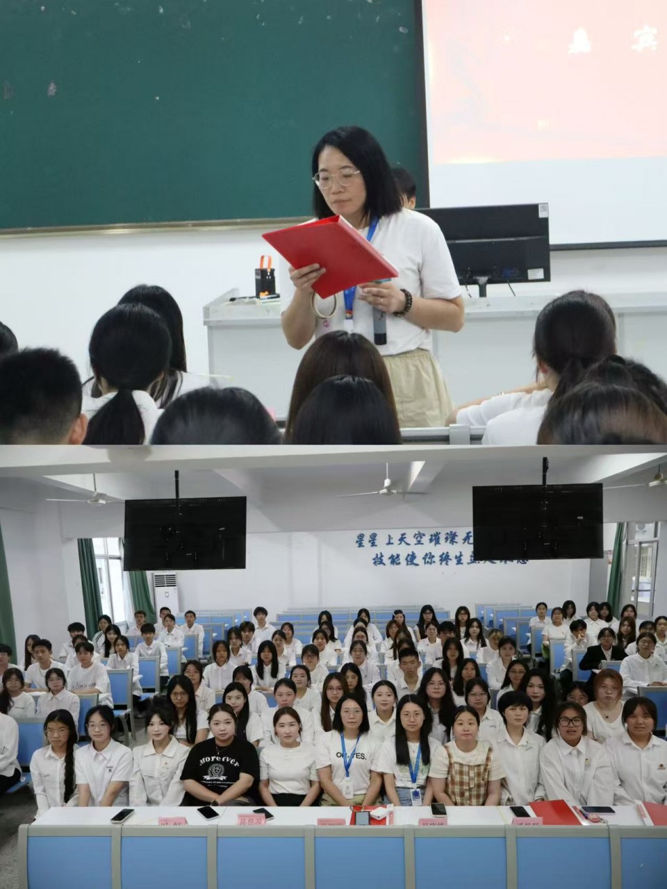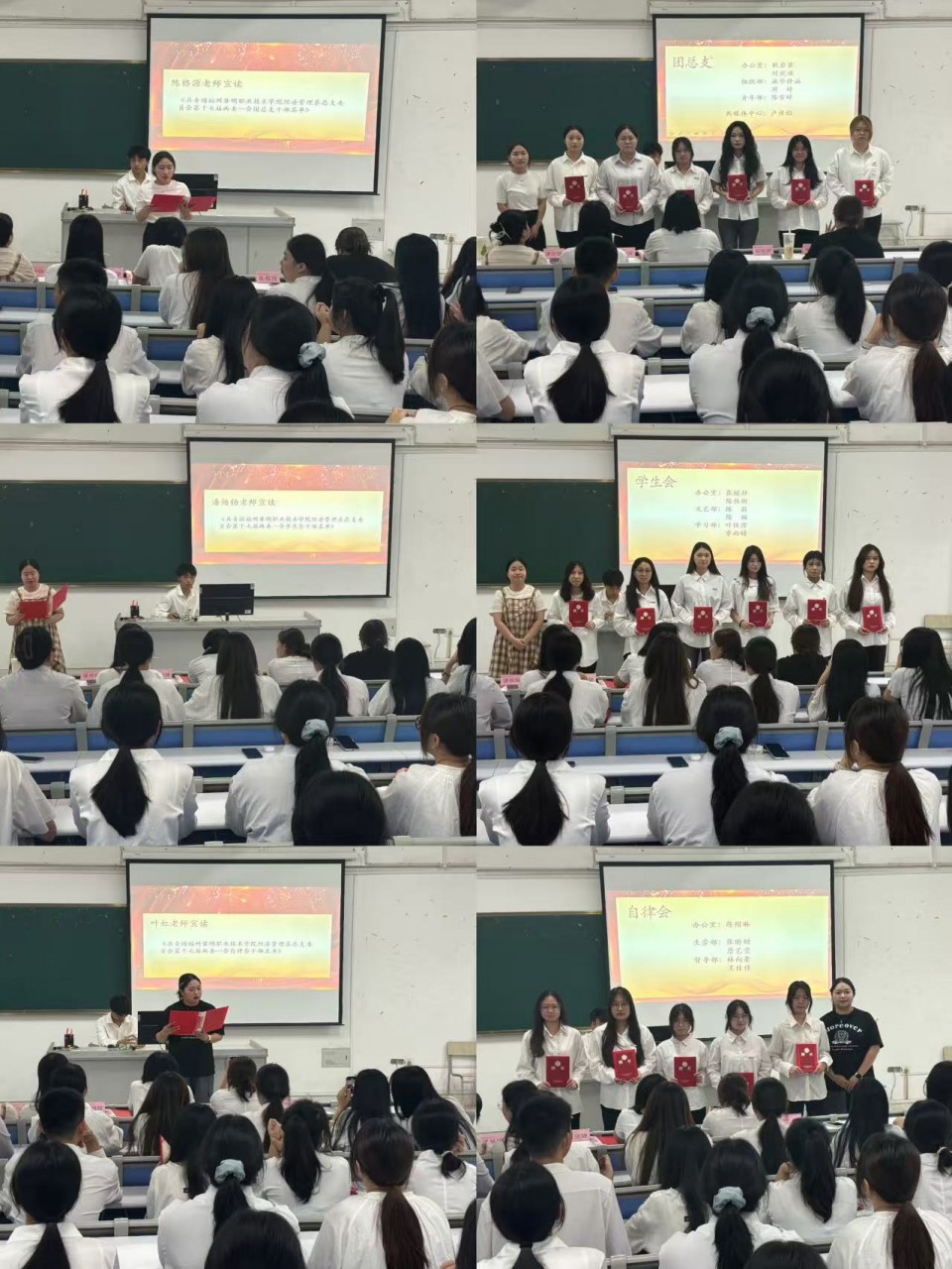 2025 年 6 月 18 日,经济管理系在综合楼 307 举办解聘书仪式暨 24 级表彰大会,旨在优化学生干部队伍建设,树立优秀榜样。团总支书记孙丽平老师,团总支副书记吴晓婕老师及辅导员陈格源、潘炀钖、叶虹出席活动,与全体学生共同见证荣誉时刻。