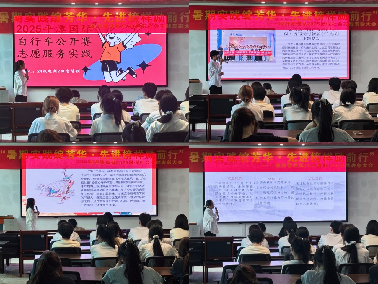 活动之初,优秀代表们轮流分享了自己的实践报告。在报告中,全面展示了他们昂扬的精神风貌和扎实的实践成效。他们讲述了自己在暑假实践中所取得的成效,还进一步分析了自己在实践中遇到的困难,分享了自己在实践中的宝贵经验。他们深入城乡各处,做到了行知合一,承担起社会责任,做到了在基层实践中锤炼本领、在奉献中铸品格。